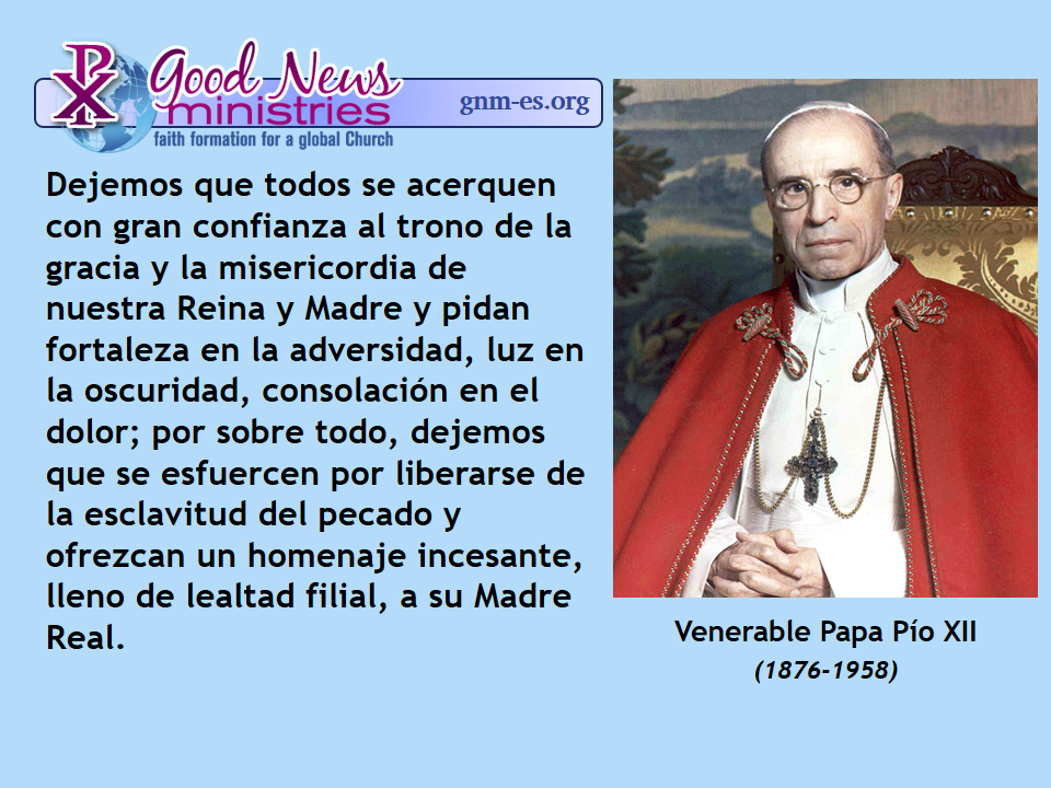 Dejemos que todos se acerquen con gran confianza al trono de la gracia y la misericordia de nuestra Reina y Madre y pidan fortaleza en la adversidad, luz en la oscuridad, consolación en el dolor; […] Read More
