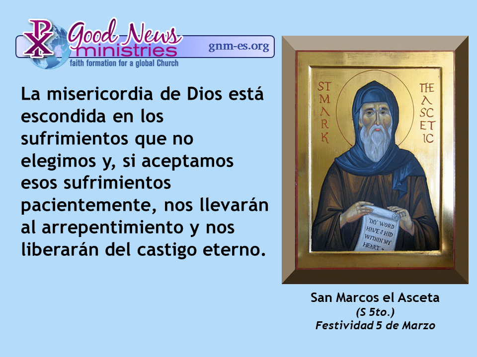 La misericordia de Dios está escondida en los sufrimientos que no elegimos y, si aceptamos esos sufrimientos pacientemente, nos llevarán al arrepentimiento y nos liberarán del castigo eterno. (Siglo 5to.) Festividad 5 de Marzo