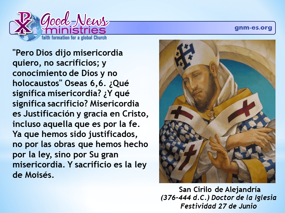 “Pero Dios dijo misericordia quiero, no sacrificios; y conocimiento de Dios y no holocaustos” Oseas 6,6. ¿Qué significa misericordia? ¿Y qué significa sacrificio? Misericordia es Justificación y gracia en Cristo, incluso aquella que es por […] Read More